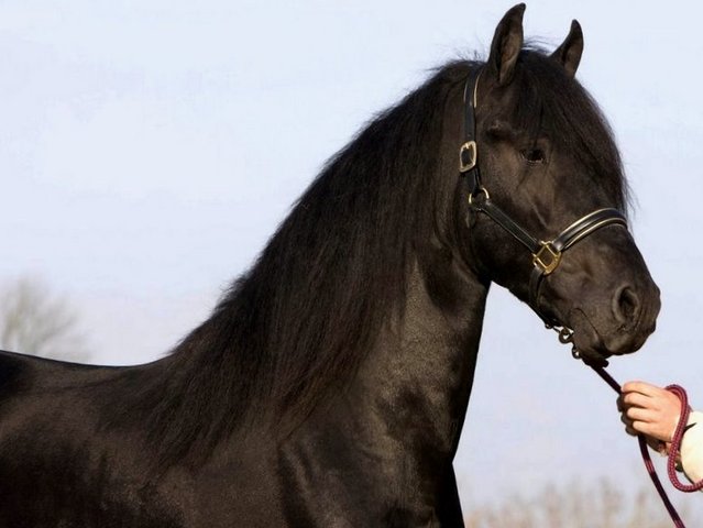 The black Friesian horse is the only horse breed native to the Netherlands, where the Friesian has been known since as far back as the 13th century. A consistent breeding policy has produced the black Friesian horse we are familiar with today, exhibiting the unique characteristics of the breed and continuing to bear close resemblance to its ancestors.