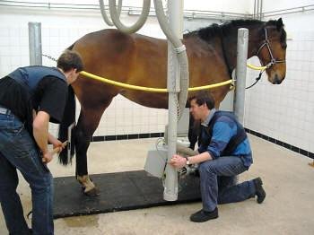 We also have every Friesian horse undergo a very strict clinical exam including all flexions, trotting on hard ground etc. We have our specialized horse clinic to perform the clinical exam the same way it is done in the United States.